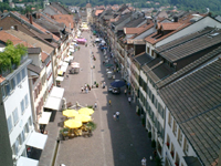 Turmstube mit herrlichem Ausblick auf die Kaiserstraße, den Viehmarktplatz und in die Schweiz.